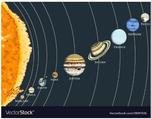 Vũ trụ không gian luôn là một bức tranh bí ẩn, được tô điểm bởi những vì sao, hành tinh và thi thoảng là những vị khách từ thế giới bên ngoài hệ thống hành tinh mà ta từng quen biết bấy lâu vẫn quay quanh Mặt Trời. Các hành tinh này gồm, từ vì sao gần mặt trời nhất, Mercury (Sao Thủy), Venus (Sao Kim), Earth (Trái Đất, với chấm nhỏ là Mặt Trăng quay quanh trái đất do hấp lực của trái đất), Mars (Sao Hỏa), Jupiter (Sao Mộc), Saturn (Sao Thổ), Uranus (Sao Thiên vương), Neptune (Sao Hải vương) và Pluto (Sao Diêm vương).
