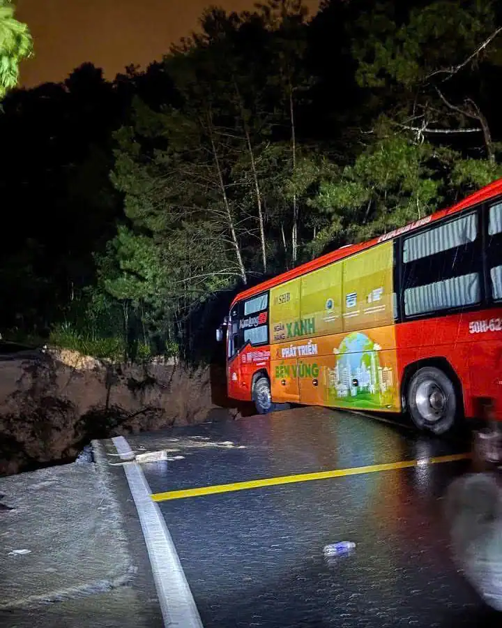 Đèo Mimosa dài 11 km, trên quốc lộ 20, là con đường chính phía nam vào Đà Lạt. Hiện nhà chức trách địa phương đã cấm đường và đang tìm cách kéo chiếc xe đò Phương Trang có phần đầu nằm ở phần lở của đèo.
