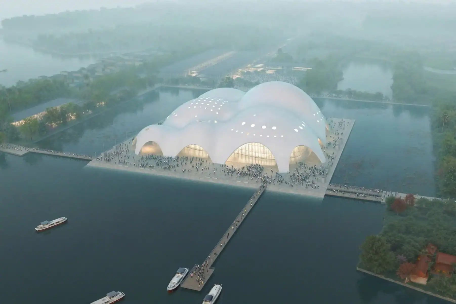 Điểm nhấn của công trình là mái vòm lấy cảm hứng từ hình ảnh viên ngọc trai nổi trên mặt nước Hồ Tây, kết cấu siêu mỏng, siêu chịu lực, phủ vật liệu tạo hiệu ứng phản chiếu sắc nước theo ánh sáng trong ngày. Khi hoàn thành, nhà hát là nơi phục vụ nhiều loại hình trình diễn nghệ thuật khác nhau như hòa nhạc giao hưởng, biểu diễn âm nhạc kiểu Broadway, opera và ballet cổ điển…Dự kiến công trình sẽ hoàn thành vào năm 2027.