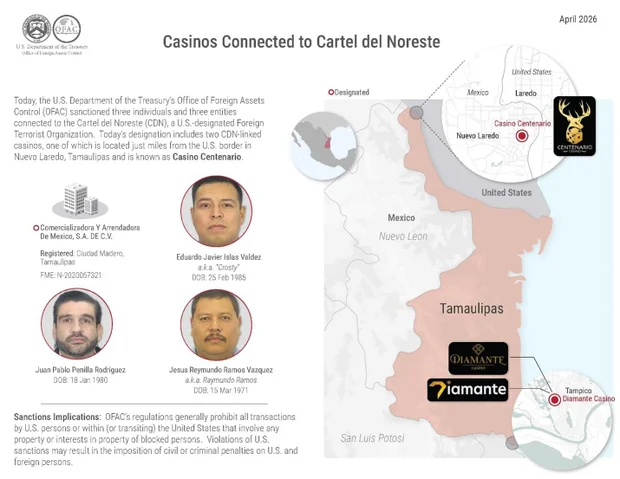 Hôm nay, Văn phòng Quản trị Tài sản Ngoại quốc (OFAC) đã nhắm mục tiêu vào sáu đối tượng liên quan đến băng đảng Cartel del Noreste (CDN) – một trong những tổ chức tội phạm bạo lực nhất tại Mexico. Khi Bộ Tài chính đưa một cá nhân hay tổ chức vào danh sách đen, chính phủ sẽ đóng băng mọi tài sản của họ tại Hoa Kỳ. Điều này cũng ngăn cấm mọi người dân và công ty Mỹ giao thiệp hay làm ăn với họ.