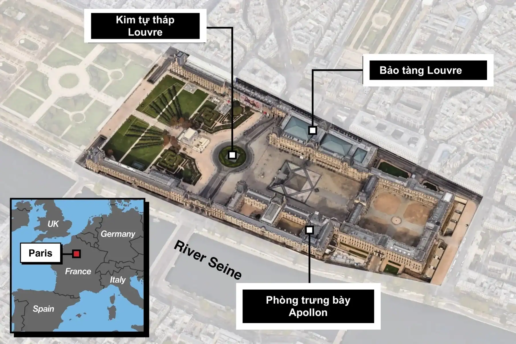 Theo Le Monde, lúc 9g30 sáng ngày 19-10, một vụ cướp táo bạo đã xảy ra tại Bảo tàng Louvre , Paris,. Vụ đột nhập diễn ra chớp nhoáng trong vòng 7 phút, từ khoảng 9h30 – 9h40 (giờ địa phương). AFP cho biết nhóm cướp gồm bốn người được trang bị cưa máy. Ba trong số đó “xâm nhập từ bên ngoài bằng cách sử dụng thang nâng gắn trên xe tải”. Chúng phá cửa sổ của phòng trưng bày Apollon rồi sau đó “tiến thẳng đến một số tủ trưng bày” lấy các món trang sức.
