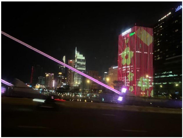 Chưa hết, phải kể đến ánh đèn màu vào ban đêm. Sài Gòn lấp lánh muôn sắc màu rải từ các tòa nhà cao tầng xuống đất, từ các chân cầu rọi lên những sợi cáp treo trên cao, từ xa đến gần, từ Đông sang Tây, Nam lên Bắc. Chúng làm Sài Gòn lung linh và duyên dáng. Sài Gòn tô son điểm phấn đến thế, làm sao không khiến người phương xa về bị choáng ngợp!? Ngỡ ngàng khi lạc vào khu đô thị mới, chúng được quy hoạch nới rộng về phía Thủ Thiêm, quận 2, quận 7, quận 9, Đồng Nai… Các Cầu Thủ Thiêm 2, cầu Phú Mỹ và nhiều cầu vượt để tránh nút giao thông có mật độ cao đã đóng vai trò quan trọng trong việc nối kết chúng lại với nhau.